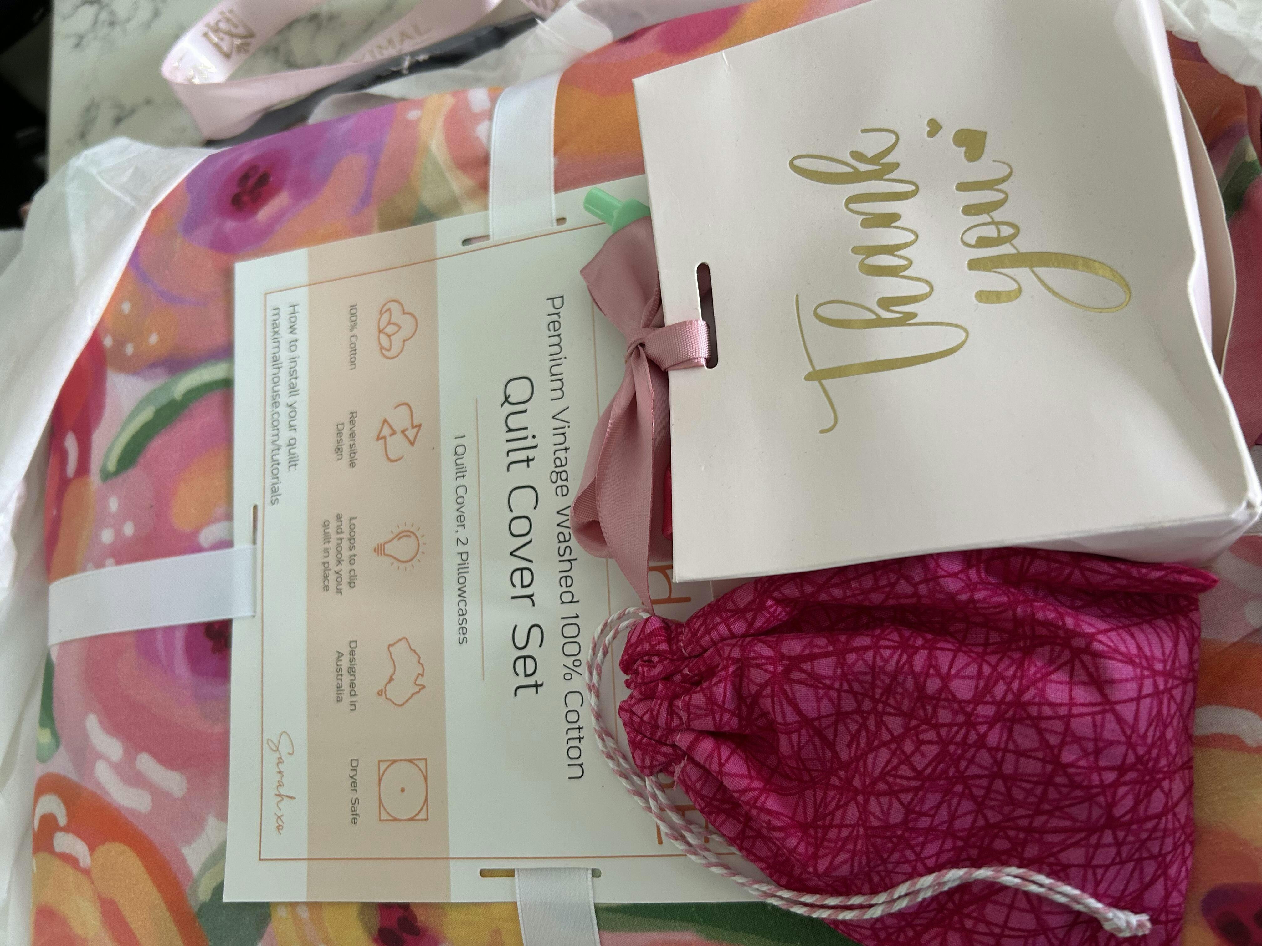 I’ve bought a lot of quilt covers over the years, but this one stands out. The fabric has a luxe feel to it. And the print is a statement piece for my bedroom! It makes the whole space feel fresh and stylish.